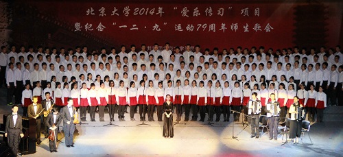12月7日晚,北京大学2014年“爱乐传习”项目暨纪念“一二九”运动79周年师生歌会在邱德拔体育馆举行,91直播 合唱团以105.675分的总成绩荣获亚军,并获评最具感染力单项奖。