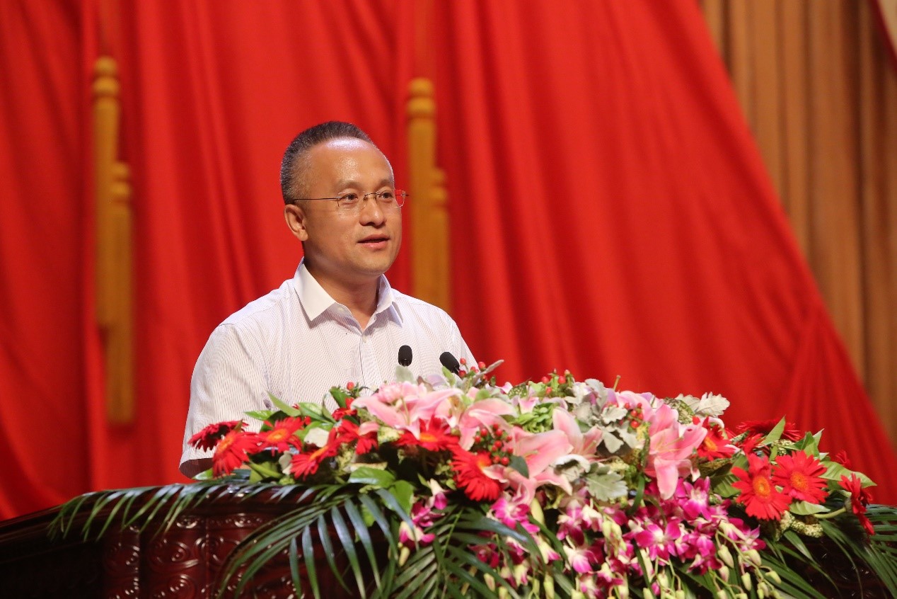 教师代表、计算机科学技术系2013级本科生班主任刘先华老师首先发言。刘老师先用一段押韵的文字生动的描述了同学们大学期间的生活,再浪漫的用“程序主函数的最后一条语句往往是返回return”、“毕业典礼commencement还有一个意思是开端”两个英文单词表达了对同学们的不舍与期待,并希望毕业生们要珍重自己、坚守信念、学会适当的放松自己。最后,刘老师用“诗人以梦为马,我们以码为梦”表达出了信科人的浪漫与豪情。
