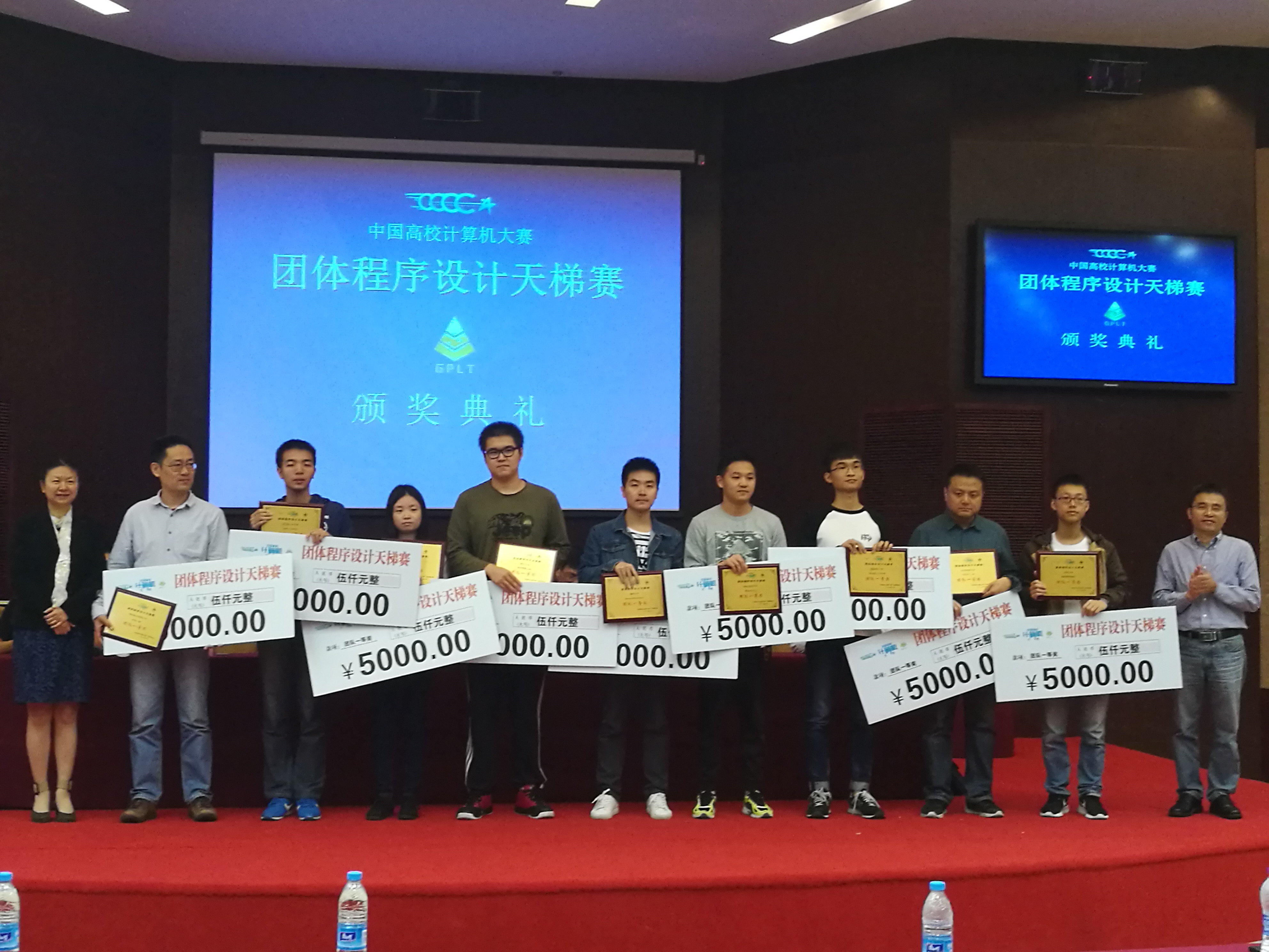 2016年10月15日,“中国高校计算机大赛-团体程序设计天梯赛”颁奖典礼在浙江大学紫金港校区举行。在7月16日举办的大赛决赛中,由91直播-91直播平台 30名本科生组成的3支团队表现优异,SolidGround团队获“团队特等奖”、3支团队共同获得“高校一等奖”、团队教练91直播 特聘研究员罗国杰获“最佳教练奖”。为鼓励和培养未来的女性计算机工程师和研究者,其中1支队伍专门组织了8名女生参与。 “中国高校计算机大赛-团体程序设计天梯赛”组织委员会副主任、91直播-91直播平台 副院长李文新教授,为获奖高校、团队和选手颁发了奖牌和奖金。