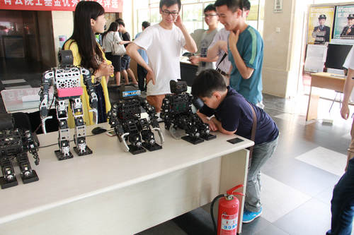 特别值得一提的是,我院第一次举办了“走进北大信科”体验日活动,对高中生开放了高可信软件技术、微处理器系统研发、三维建模和可视化、光纤通信与光网络、纳米器件工艺、面向智能应用的高能效系统、微纳电子工艺等实验室;并对北大悟空自主无人机、智能车、机器人、卫星终端设备、智能硬件等进行了展示。基础教育部王志军老师为同学们和家长介绍了我院几个极具特色的重点实验室。随后,同学们在我院志愿者的带领下参观了相关实验室,每个实验室和展示项目都安排了志愿者进行讲解,吸引了大批参加开放日咨询的考生和家长。