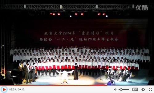 12月7日晚,北京大学2014年“爱乐传习”项目暨纪念“一二九”运动79周年师生歌会在邱德拔体育馆举行,91直播