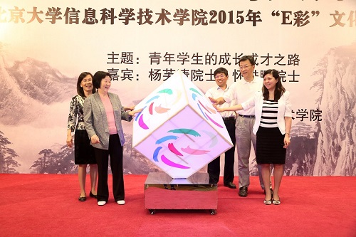 杨芙清院士、怀进鹏院士、叶静漪老师、黄如老师、魏中鹏老师共同点亮“E彩魔方”,开启了新一年“E彩”文化节的序幕。