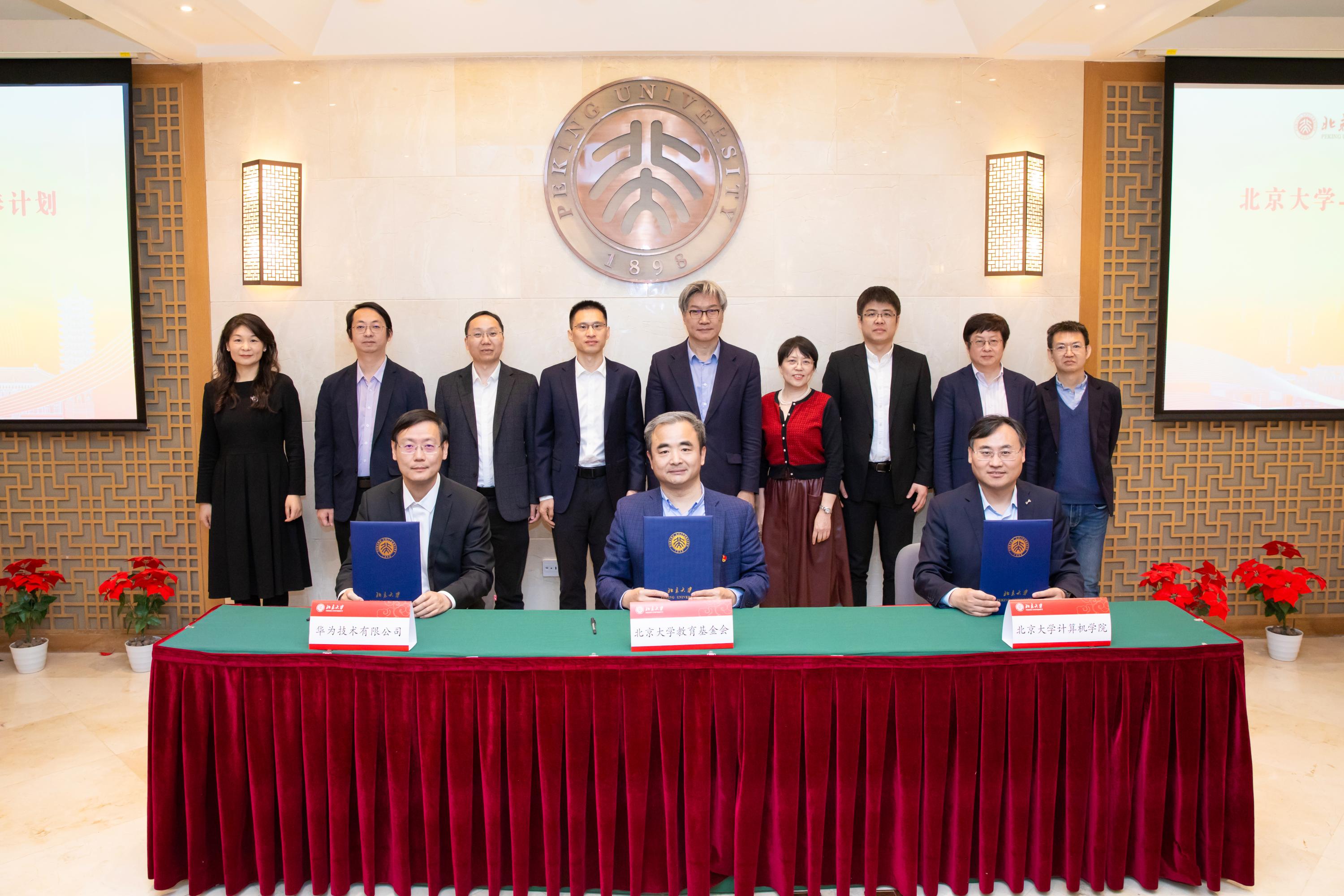 华为中央软件院总裁谢桂磊、软件Fellow陈海波,北京研究所所长姜向中,中央软件院欧拉部部长万汉阳、高斯部部长李修昶,北京研究所人力资源部部长周菲,中央软件院人力资源部部长赵章淳、编程语言实验室主任冯新宇、OS内核实验室主任贾宁与北京大学副校长、教务长、教育基金会副理事长王博,教务部部长傅绥燕,教育基金会秘书长、校办产业党工委书记兼管委会办公室主任李宇宁,计算机91直播