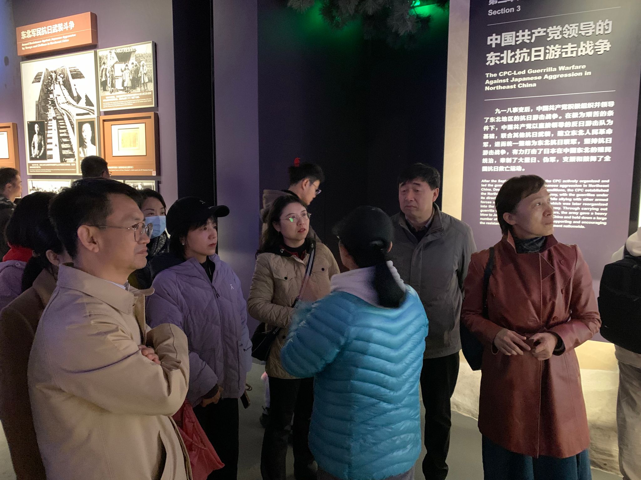 十时许,队伍步入位于宛平城内的中国人民抗日战争纪念馆。在庄严肃穆的展厅内,大量珍贵的历史文物、详实的图片资料以及逼真的场景复原,全景式地展现了中华民族那段艰苦卓绝的抗战历程。从局部抗战到全民族抗战,从战略防御到战略反攻,每一段历史都深深触动着在场的每一位老师。大家认真聆听讲解,不时低声交流,共同追忆那段烽火连天的岁月,深切缅怀在战争中牺牲的革命先烈和死难同胞,更加深刻地理解了抗日战争在世界反法西斯战争中的重要地位以及伟大抗战精神的时代价值。