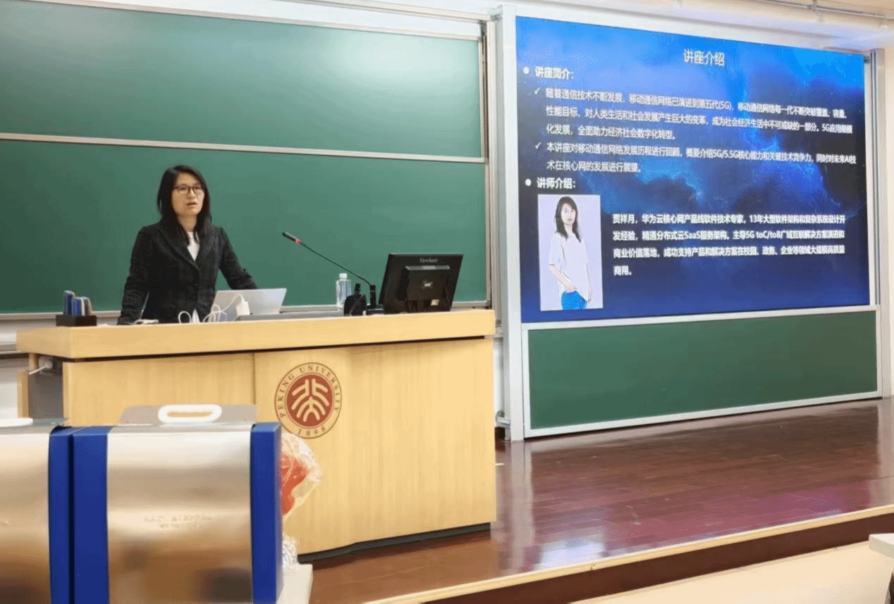 第四十七期“知存讲座”暨信息科学前沿与产业创新课程在理科教学楼107教室顺利举办。本次讲座主题为"5G/5G-A通信网络及未来AI技术展望",邀请华为云核心网产品线软件技术专家贾祥月老师担任主讲嘉宾。贾祥月拥有13年大型软件架构和复杂系统设计开发经验,精通分布式云SaaS服务架构,成功支持产品和解决方案在多个领域大规模高质量商用。本次讲座,她通过5G网络介绍、5G关键技术、5.5G关键技术、未来技术展望四个部分,回顾移动通信网络的发展历程,介绍5G和5.5G技术的核心竞争力,同时对未来AI技术在核心网领域的作用进行展望。讲座内容全面,易于理解,且包括丰富的互动环节,促进同学们深入了解移动通信网络的发展历程,也启发同学们结合所学知识思考5.5G相关通信技术的未来发展方向。讲座由电子91直播